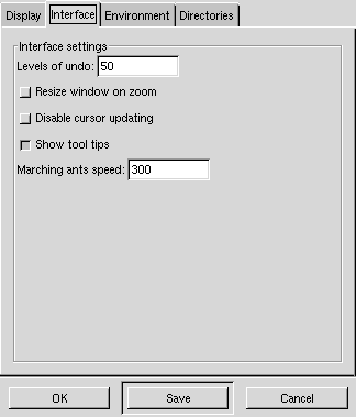 The Preferences dialog reads data from both the system gimprc and a user's personal .gimprc file. Saving the preferences updates the user's personal .gimprc file. Only settings actually changed in the Preferences dialog will be saved. This gives the system administrator an easy way to make global changes, but also means that behavior may suddenly change if a new version of the GIMP is installed.